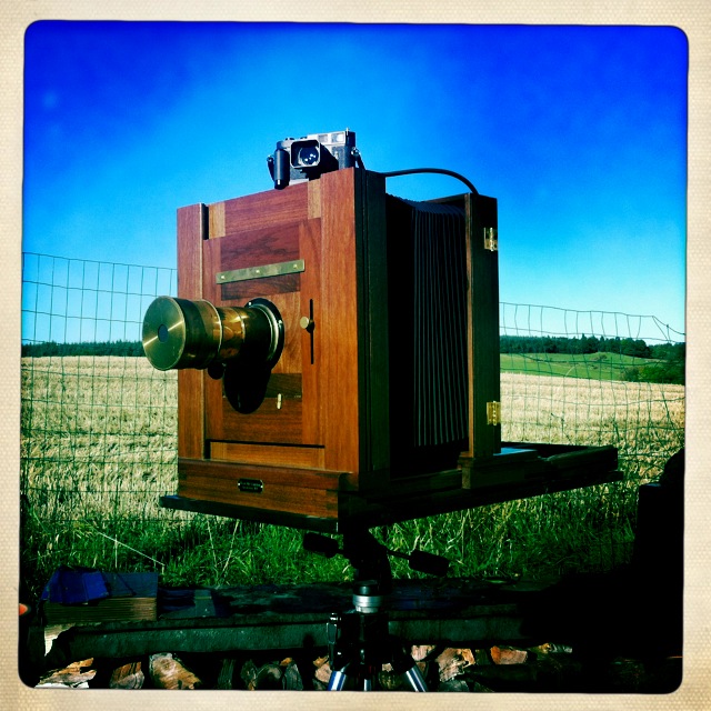 It’s a bootiful 11×14″ wet plate camera made from Walnut – photographed, of course, with an iPhone John 🙂