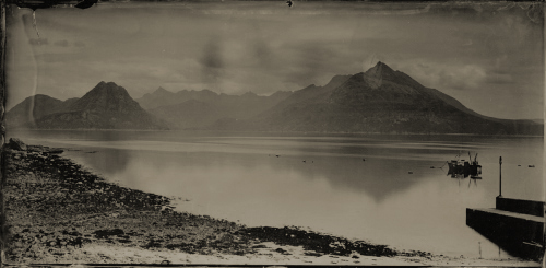 I re-visited Elgol last year with the new camera and made this bigger plate onto 14×7″ black glass and really loved the richness of the blacks the glass gives you. It’s a lot more involved than using black metal as you’ve got to edge, polish and clean the glass first. You’ve then got to line the edge with albumen to prevent the collodion from peeling – but I think it’s worth the effort.
